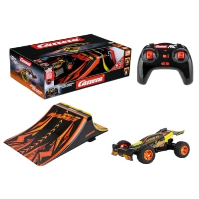 Fast speed: the Carrera RC Orange Jumper reaches an impressive top speed of 15 km/h, which provides even more power with the integrated Turbo Button - perfect for fast races and action-packed stunts. Precise control: Thanks to the 2.4 GHz full function remote control, you have full control over the vehicle, whether in tight corners, wild driving manoeuvres or spectacular jumps. Action-packed extras: with the included ramp, you can complete breathtaking jumps and tricks and exploit the full potential of the RC car - ideal for exciting outdoor adventures Ready to go: The ready-to-run set includes a built-in battery, USB-C charging cable and batteries for the remote control, so you can get started immediately after unpacking. LONG-LASTING FUN With a ride time of up to 12 minutes and only 30 minutes charging time, the ORANGE JUMPER offers long-lasting racing action and is ideal for kids aged 6 and up who love speed and fun., Manufacturer: Carrera Revell Europe GmbH