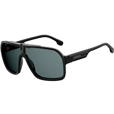 Navigator men's sunglasses with thick injected plastic frame Highly effective matte black finish Carrera Logo engraved as relief on each bracket, C logo on the left bracket Grey lenses made from 100% UV resistant polycarbonate with anti-reflective coating Molded nose pads for maximum fit