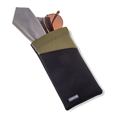 Carson Protective Eyeglass Pouch with Built in Microfiber Cloth for Eyewear and Sunglasses, Olive, One Size