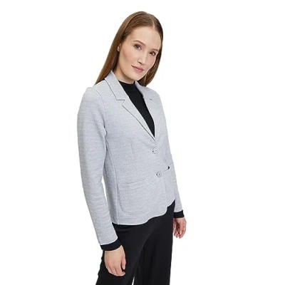 Stylish short women's blazer from Cartoon: discover this fashionable blazer that perfectly combines elegance and versatility. PREMIUM COTTON BLEND - Made from a premium cotton blend, this blazer not only offers style but also high wearing comfort. Simple elegance with practical detail: the blazer is designed with two buttons and two pockets, which is a successful combination of simple elegance and functionality. Versatile pairing: Whether paired with trousers, jeans or skirts, this short blazer adds a chic touch to any outfit and can be easily integrated into different looks. TIMELESS CHARM With its grey color and classic design, this blazer adds timeless charm to your style and is perfect for a variety of occasions.