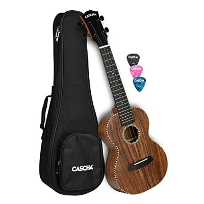 CASCHA All Solid Acacia Concert Ukulele with Padded Case and 3 Plectrums
