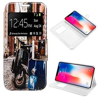 Case Cool Flip Cover for iPhone X/iPhone XS Drawings Motorcycle multicoloured