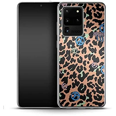 caseable Samsung Galaxy S20 Ultra Mobile Phone Case Silicone Protective Shock Absorbing & Scratch Resistant Surface Colourful Design Leopard Peace Palms Animal Print