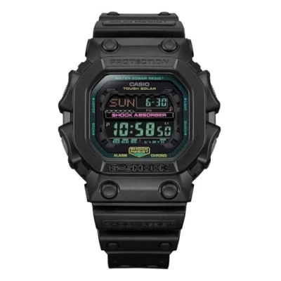 Bold black meets vibrant colour in these tough G-SHOCK watches with fluorescent accents. This Digital watch has a calendar function: Day-Date as well as a Solar Powered , Stop Watch , Worldtime , Coun High quality 21 cm length and 21 mm width Black Plastic strap with a Buckle Case measurement: 40 X 53 mm,case thickness: 16 mm, case colour: Resin and dial colour: Black Water resistant: 20 bars -Weight: 86 g The watch is delivered in an original gift box and has a warranty of 2 years