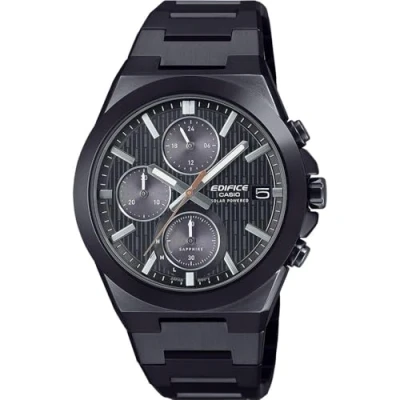 For all fans of exclusive sports cars. Introducing the first EDIFICE with ceramic bezel - masterfully designed and built to last. This chronograph features a date display and impresses with solar power, stopwatch, 24-hour display and luminous hands - technique and style to perfection. High quality black stainless steel bracelet, 21 cm long and 22 mm wide, with a folding clasp with push button closure. Case diameter: 40 mm, case height: 12 mm, case colour: black, dial colour: black Waterproof: 10 bars -Weight: 140 g The watch comes in a beautiful, original gift box and has a 2 year warranty
