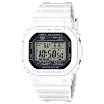 Rediscover time with the latest evolution of the original G-SHOCK DW-5000C from 1983. This Digital watch features a calendar function: Day-Date and is equipped with a Solar Powered , Stop Watch , Worldtime and Alarm High quality White Plastic strap, measuring 21 cm in length and 24 mm in width, with a Buckle. Case measurement: 35 X 43 mm,case thickness: 10 mm, case colour: White and dial colour: Black Water resistant: 20 bars-Weight: 72 g The watch is delivered in an original gift box and has a warranty of 2 years
