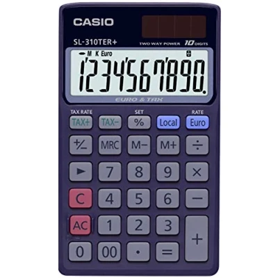 Casio SL 310TER+ Pocket Calculator 10 Digit Display with Euro Converter Blue