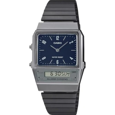 Express both your contemporary and vintage sides with a retro-modern look. Numeric indexes and a touch of glossy colour come together in a traditional yet up-to-date design. This Analogue-Digital watch has a calendar function: Day-Date as well as Stop Watch , Alarm and Dual Time High quality 20 cm length and 20 mm width Grey Stainless steel strap with a Folding Clasp Case measurement: 30 X 40 mm,case thickness: 8 mm, case colour: Grey and dial colour: Blue Water resistant: 3 bars-Weight: 54 g The watch is delivered in an original gift box and has a warranty of 2 years