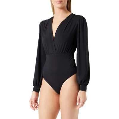 Elegant bodysuit Soft jersey material V-neck Ruffle with wrap look Long sleeves with cuffs