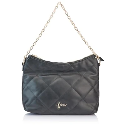Feminine handbag Made from soft faux leather Diamond pattern Gold accents Spacious inner compartment