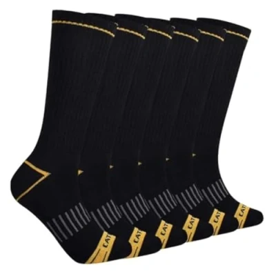 CAT Men's Half Cushioned Crew Socks Pack (Pack of 6), Black (6 Pack), XL