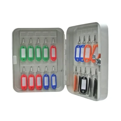 Steel key cabinets to accommodate 20 keys 20 Assorted Tags; Feature a cylinder lock with 2 keys Constructed using 0.8mm steel with a high quality powder coated finish The cabinets come complete with a set of coloured key fobs (a range of key fobs is available separately), self adhesive numbered labels and wall fixing kit Dimensions: 20 H x 16.2 W x 8 D in cm