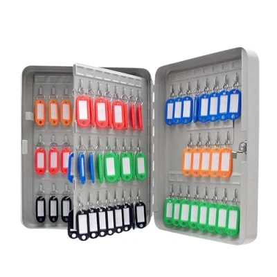 93 KEY CAPACITY: Keeps up to 93 keys organised and easily accessible, making it perfect for offices, hotels, or any place where key storage is a must-have. The hinged interior hook panel maximizes capacity and allows for easy access to keys. DURABLE CONSTRUCTION: Made from powder-coated 0.8mm steel for long-lasting use SECURE CYLINDER LOCK: Comes with a secure cylinder lock and two keys for added peace of mind. COLOURED KEY FOBS: Supplied with coloured key fobs for easy identification, and self-adhesive numbers for labelling hooks and organizing keys. EASY WALL MOUNTING: Can be easily bolted to a wall using the included fixings for added security.