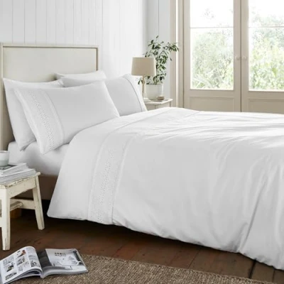 Catherine Lansfield Broderie Anglaise King Duvet Cover Set with Pillowcases White
