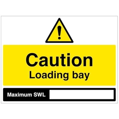 Caution Loading Bay, Maximum SWL : (blank space) (self adhesive vinyl safety label)