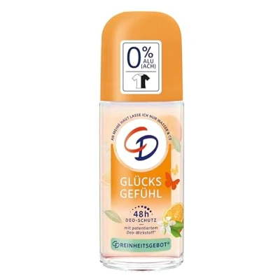 The CD roll-on happiness with orange blossom offers long-lasting freshness, safety and care. Reliable 24-hour deodorant protection against body odour The skin compatibility of the deodorant is dermatologically tested, it is pH neutral and also suitable for sensitive skin as for all other skin types Reliable protection against unpleasant body odour without leaving white residue on clothing The CD roll-on deodorant complies with the CD purity requirement: only selected ingredients, no synthetic dyes and no animal ingredients Box contents: 6 x 50 ml deodorant with good luck feeling from CD / deodorant roller without aluminium salts 24-hour roll-on deodorant with orange blossom fragrance.