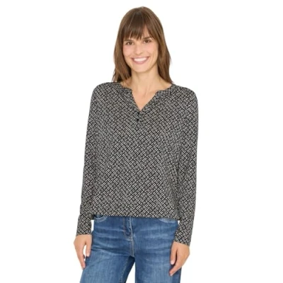 Women's shirt Graphic pattern Split neck with button detail Elasticated hem Dimensions for EU size M approx. Arm length: 60 cm, chest width: 55 cm, front length: 65 cm, bottom width: 56 cm