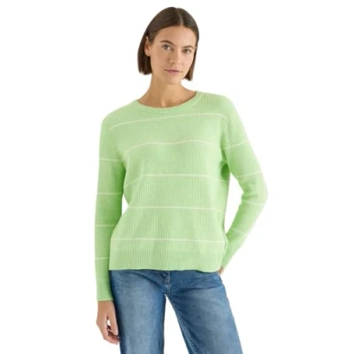 CECIL Striped Textured Pullover Bamboo Green Melange XS