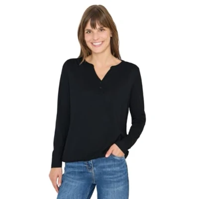 Women's shirt Split neck with button detail Elasticated hem Long sleeve Dimensions for EU size M approx. Front length: 65 cm, chest width: 55 cm, sleeve length: 60 cm, bottom width: 56 cm