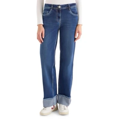 CECIL Wide Leg Washed Look Jeans Mid Blue Used Wash 29