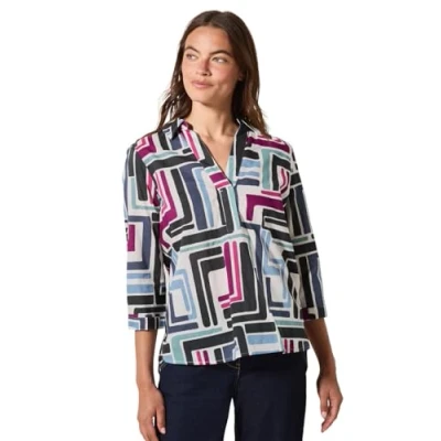 Women's blouse with graphic pattern Shirt collar 3/4 sleeves Rounded hem Lightweight cotton quality
