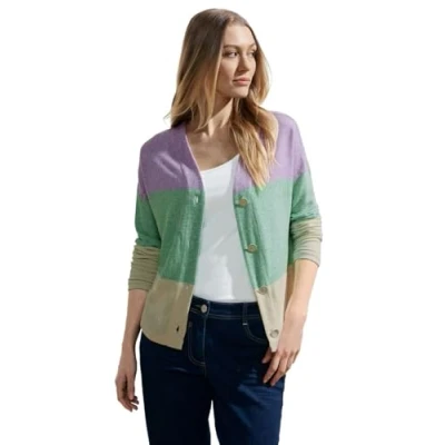 Cecil Women's Cosy Color Block Jacket, Celery Green Melange, XL
