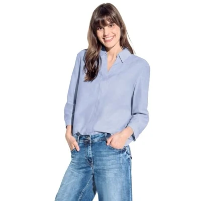 Cecil Women's Linen_Chambray Roundneck Blous, Linen Chambray Blue, M
