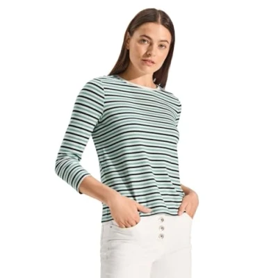 Shirt with 3/4 sleeves Crew neck Multi-coloured stripes Material mix with stretch content Soft and comfortable