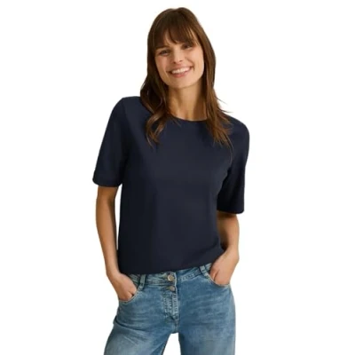 Cecil Women's Basic Ribbed Structure T Shirt, Universal Blue, S