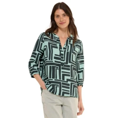 Women's blouse with graphic pattern Slit neckline 3/4 sleeve with elastic cuffs Fine structure Lightweight viscose mix
