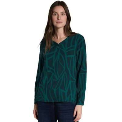 Women's blouse V-neck Long sleeve with cuffs and button Graphic pattern Soft Viscose