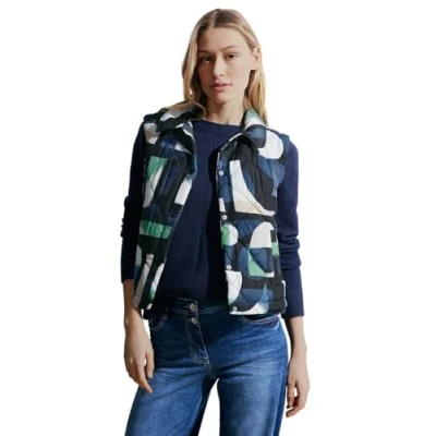 Cecil Vest with collar and side pockets has a press stud placket and side buttons on the hem The women's vest has a fresh colour combination in a modern look The Cecil brand has a casual/sporty orientation, new customers recommend ordering one size smaller Dimensions for EU size M approx. : length 59cm, chest 111cm, hem width 113cm