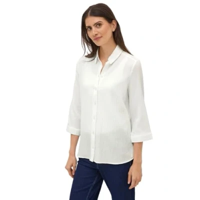Women's blouse Shirt collar and full button placket 3/4 sleeve with turn-up Rounded hem Pleasant seersucker quality