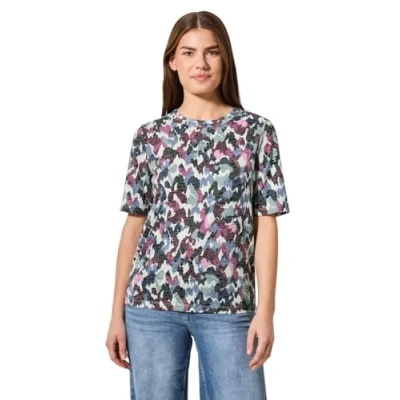 Patterned T-shirt Crew neck Short sleeve Graphic pattern and burnout look Soft and airy