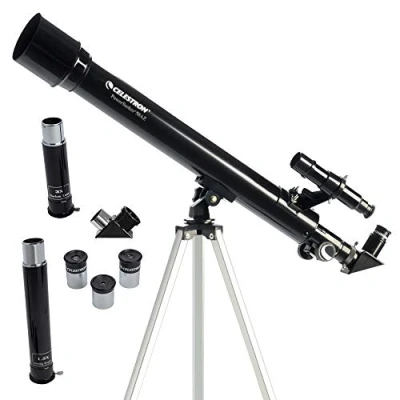 PERFECT BEGINNERS TELESCOPE: The Celestron PowerSeeker 50AZ is an easy-to-use and powerful telescope. The PowerSeeker series is designed to give the first-time telescope user the perfect combination of quality, value, features, and power MANUAL YOKE MOUNT: Navigate the sky with our refractor telescope. It features a yoke mount with a slow-motion altitude rod for smooth and accurate pointing. Adjust rod to desired position, then easily secure by tightening cross knob COMPACT AND PORTABLE: This telescope for adults and kids to be used together is compact, lightweight, and portable. Take the telescope to your favourite campsite or dark sky observing site, or simply the backyard MULTIPLE ACCESSORIES: The Celestron PowerSeeker 50AZ Telescope features 4 eyepieces (20mm, 12mm, 4mm, and 1.5x image erecting eyepiece), star diagonal, a finderscope, plus a 3x Barlow lens to triple the power of each. Accessories also include a FREE download of one of the top consumer rated astronomy software programs UNBEATABLE WARRANTY AND CUSTOMER SUPPORT: Buy with confidence from the world’s #1 telescope brand, based in California since 1960. You’ll also receive a 2-year warranty