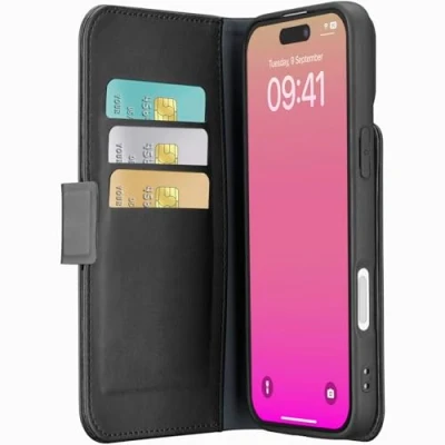 cellularline Cover Book Agenda black style case in eco leather Compatible with iPhone 17 Magnetic closure RFID & NFC Block