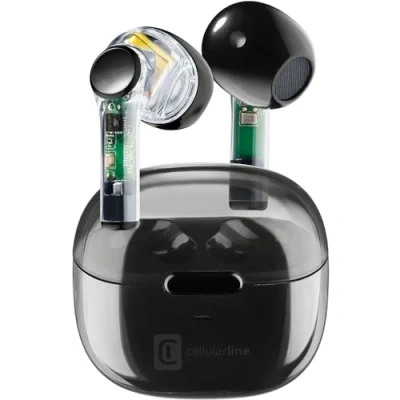 cellularline FINE Transparent TWS Wireless In Ear Capsule Bluetooth Earphones with charging Case 3.5 hours play time 4x Touch Controls and Auto Pairing