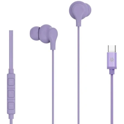 Celly, USB C Wired in Ear Headphones with Answer Button, Volume Control, Built Microphone, Purple