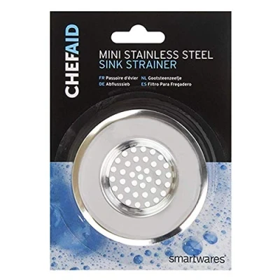 The easy way to prevent your peelings going down the sink hole These Sink Strainers measures 7.5cm in Diameter which will fits most standard UK Sinks Made from Stainless Steel Suitble form Home, Office or Caravan Use From an extensive range of Homeware Products from Chef Aid Perfect for the Kitchen Prevents Blockages From the range of products made by Chef Aid