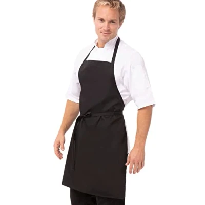 poly/cotton, soil release finish no pockets 33-Inch L by 28-Inch W Available in black and white Machine wash warm with like colors, no more then 104 degrees.