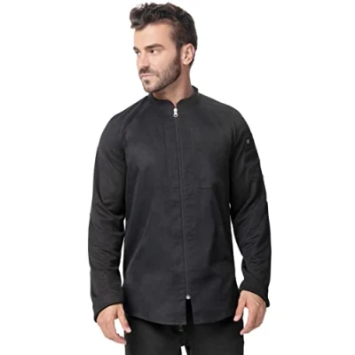 Raglan long sleeve Single breasted with front center zipper Left chest pocket and left sleeve thermometer pocket Color-matching knit mesh Back collar apron tab