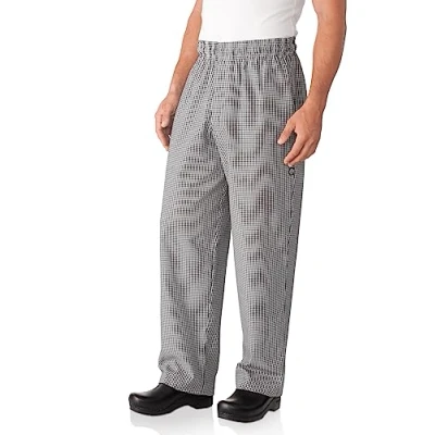 Chef Works Men's Essential Baggy Zip Fly Pants, Black, Small Check, S
