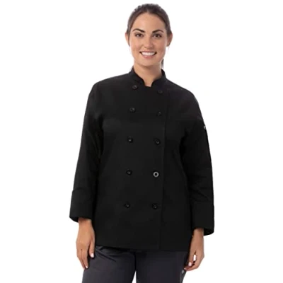 Tailored to female form Professional finish with matching buttons Left sleeve thermometer pocket Side-seam slits Long sleeves with turn-back cuffs