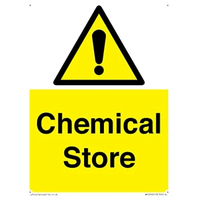 W001 : General Warning This sign is made from plastic semi-rigid 1mm Comes with3mm Corner Holes. 1mm thin plastic sign, can be screwed, stuck with adhesive, or attached with cable ties. Not suitable for hanging. A5 portrait Sign Text: Chemical Store