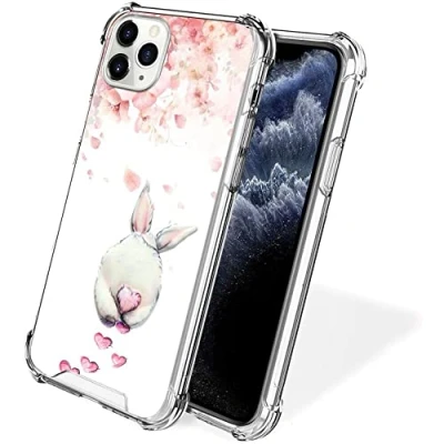 Cherry Blossom and Bunny Clear Phone Case for iPhone 11 Pro Bumper Protection Cover