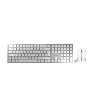 CHERRY DW 9100 SLIM, Wireless Desktop Set, Belgian Layout (AZERTY), Bluetooth & 2.4 GHz RF, Quiet Keys, Rechargeable, Silver/White