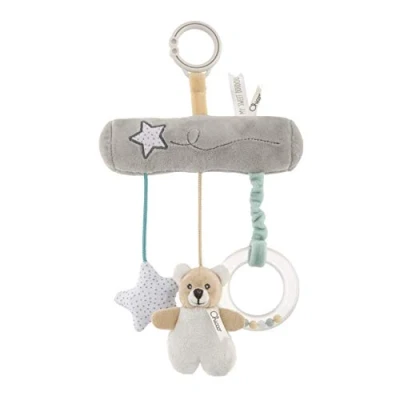 The My Sweet Dou Dou Dou Teddy Bear Mobile has a practical holder that can be easily attached to the pram or baby seat The three hanging toys entertain the baby with colourful balls, cute teddy bear and star Easy to attach to the pushchair 3 hanging figures made of plastic and soft plush, Manufacturer: Artsana Germany GmbH
