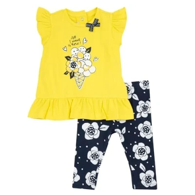 Chicco, Girl's Set with T shirt and Leggings Drawstring Elasticated Waist, Modern Fashionable Graphics, Loose Fit, Cotton, Machine Washable, Girls Girls, Designed in Italy