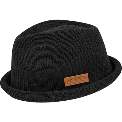 sun hat Brim width: approx. 3 cm,Height of crown: approx. 12.5 cm Crushable hats Chic and comfortable for everyday wear. Appealing design elements make this fabric hat from Chillouts a fashionable companion. The shape with diamond crown and indentations is sweepingly set off by an upward curving brim. Another special feature is the chunky knitted material that is used here. It adds a nice casual charm to the stylish player hat. With a lining band. Built-in straps to adjust
