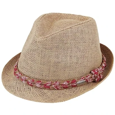 straw hat made of Adjustable size, Brim width: approx. 4 cm,Height of crown: approx. 10 cm Cloth band Exuberant mood. Summery heat won&8217;t bother this trilby by Chillouts or its wearer, because its airy weave made from flexible paper straw allows a cool summer breeze to blow through your hair at all times. With a size-regulating strap in the inner grosgrain ribbon, so that it always sits perfectly and comfortably. Naturally beautiful.